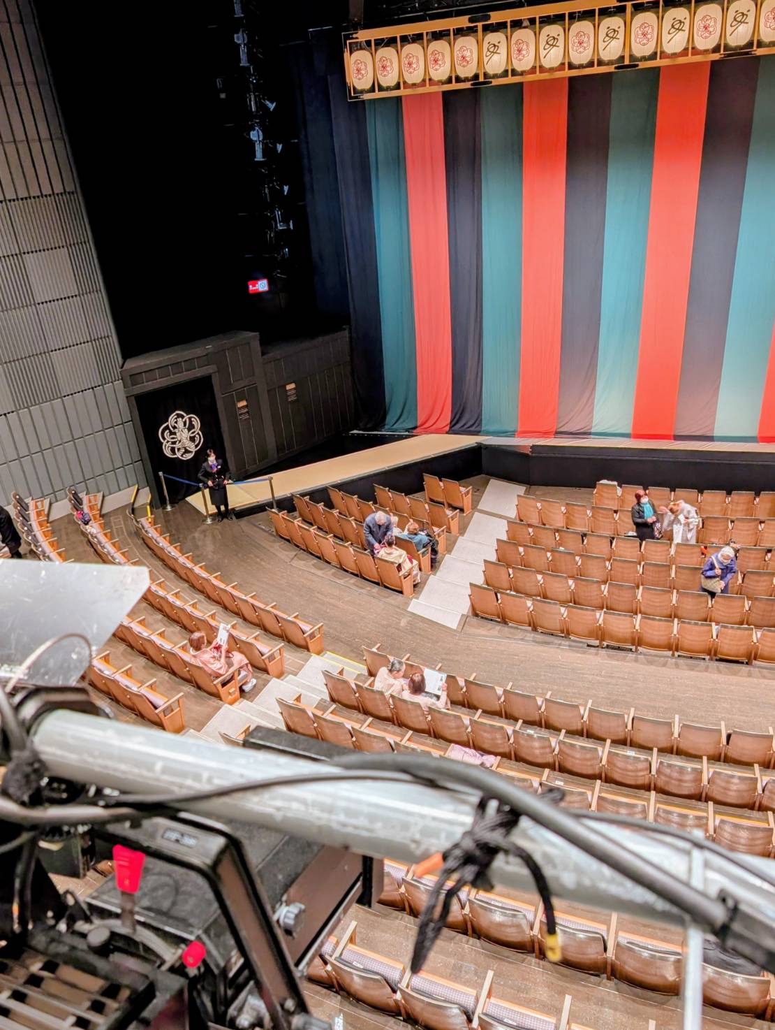 花道が逆L字から、短い直線に変わりました。出てすぐ七三くらいの長さ。揚幕は客席向きのため、出の表情が正面から見えるというレアな体験ができます。