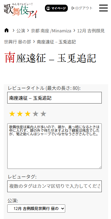 公演のページからレビューを投稿できます。