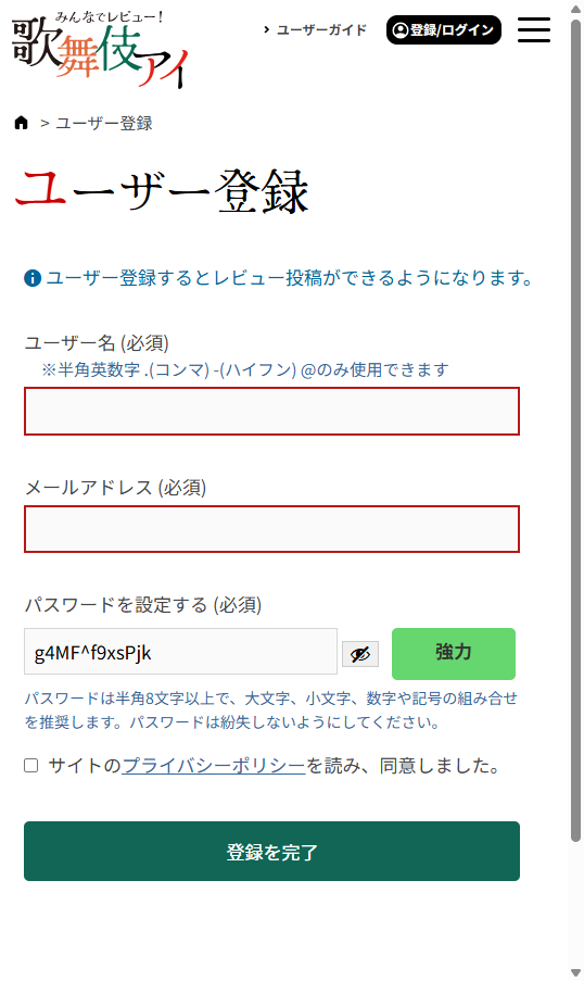 ユーザー登録するとレビューが投稿できるようになります。