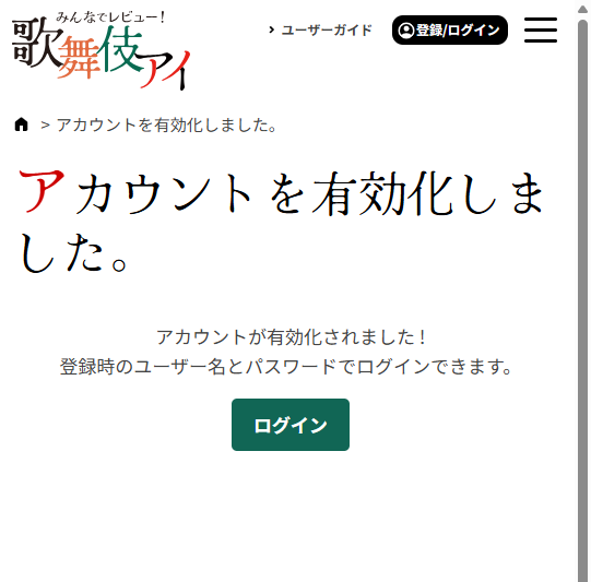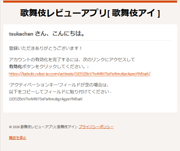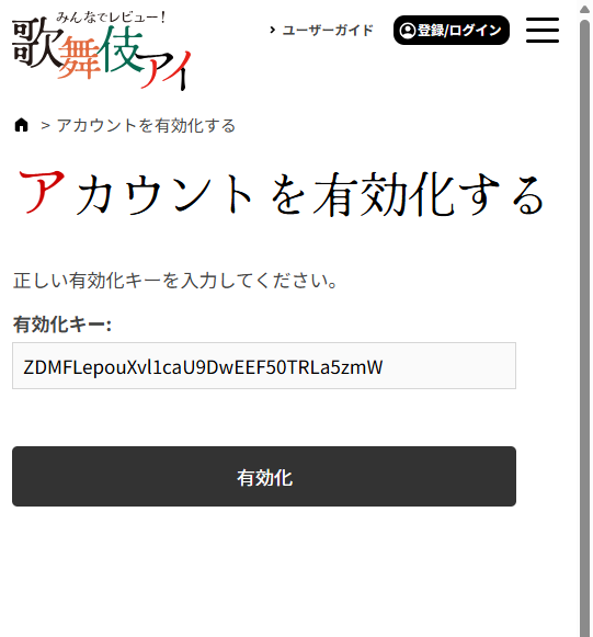 メールのリンクをクリックして開いたページの「有効化」ボタンをクリックしてください。