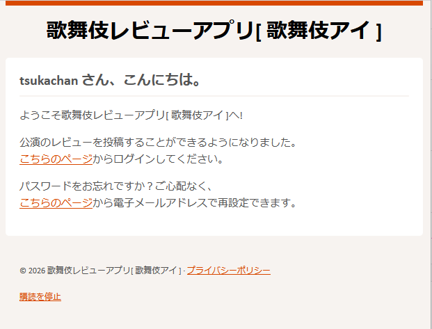 登録完了のメールも送られます。