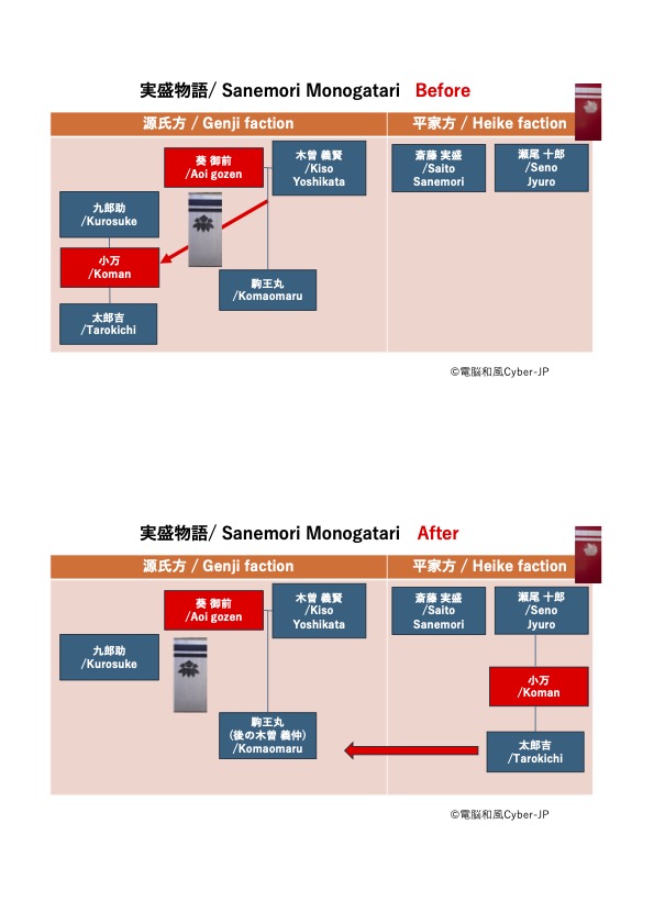 YouTubeで使用した、「実盛物語」の人物相関図を共有させていただきます
